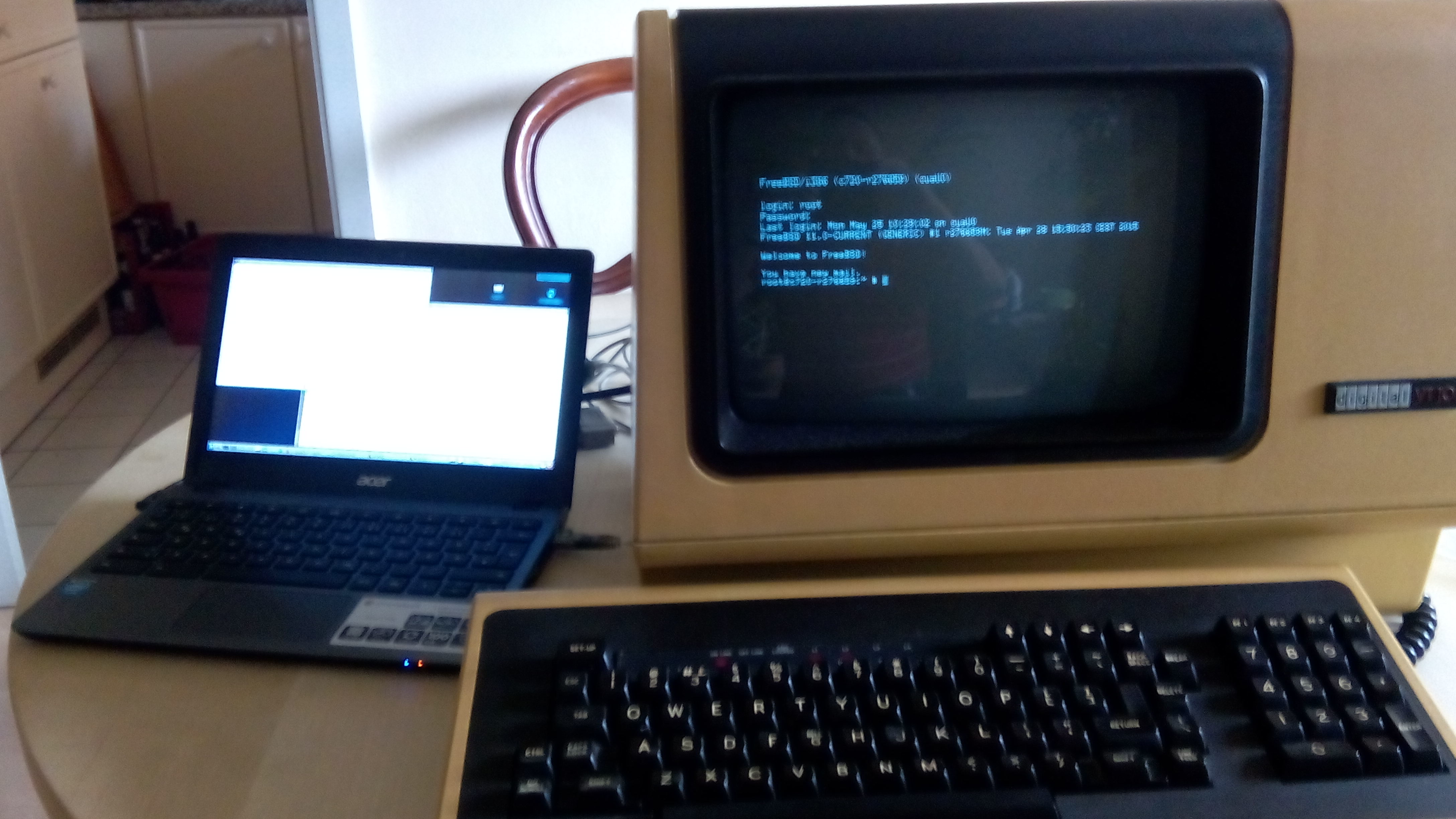 The VT102 is connected through an USB-serial adapter and getty spawns